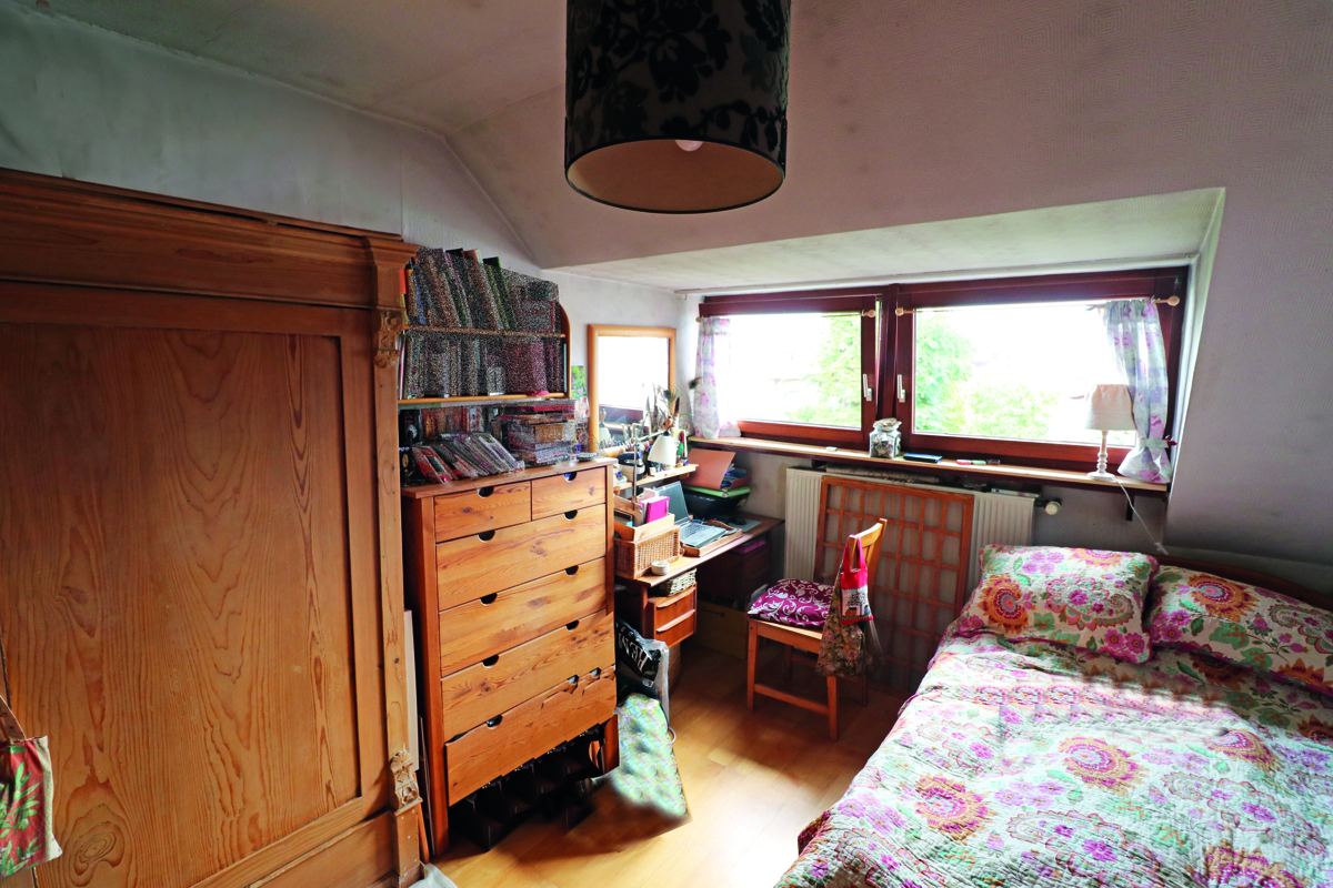 Das Haus beherbergt drei nahezu gleich geschnittene Wohnungen – bestehend aus Küche, Tageslichtbad, Wohn- und Schlafzimmer – und ist voll unterkellert.